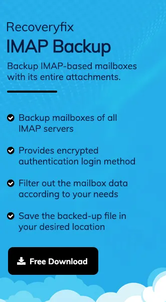 Also, make sure to back up your emails for additional data safety. For a direct approach, check out the Recoveryfix IMAP Backup tool. The IMAP Backup tool helps save data into PST, HTML, DOCX, PDF, and many other formats in a few clicks.