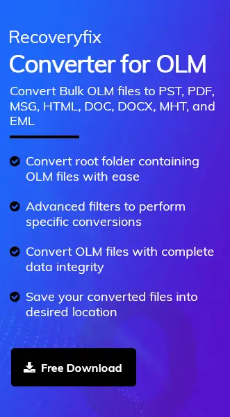 We hope you have all the relevant information for converting the OLM file to PST. Go with the steps mentioned carefully to get the desired output. However, if you are looking for an all-in-one solution that provides you with a quick & errorless operation, consider the recommended advanced OLM file converter. For hands-on experience, you can check out the Recoveryfix OLM to PST converter free trial version.