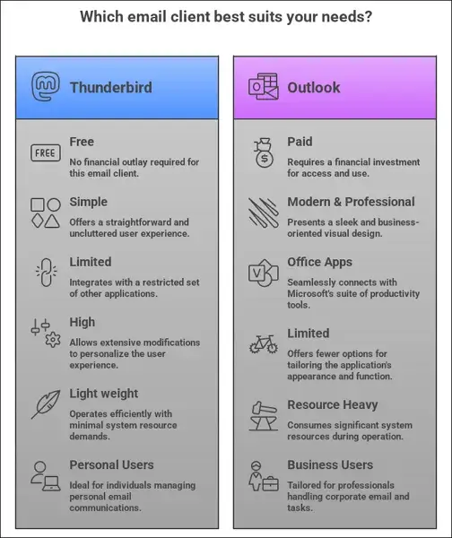 Mozilla Thunderbird vs Microsoft Outlook: Detailed Comparison Table