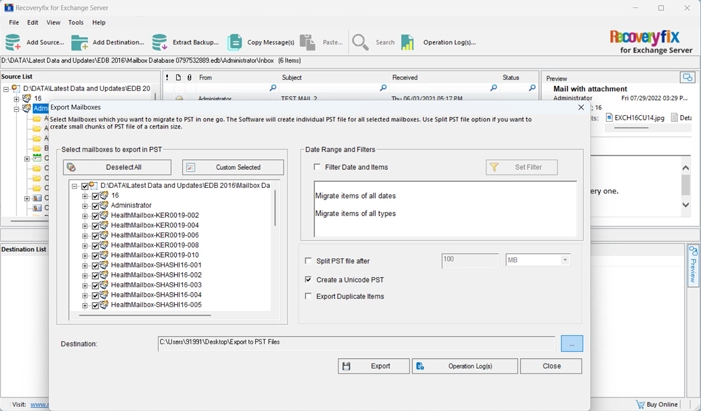 - Helps sort Exchange Database with advanced filtering options like Data Range, Item Type, Check Boxes, and more.